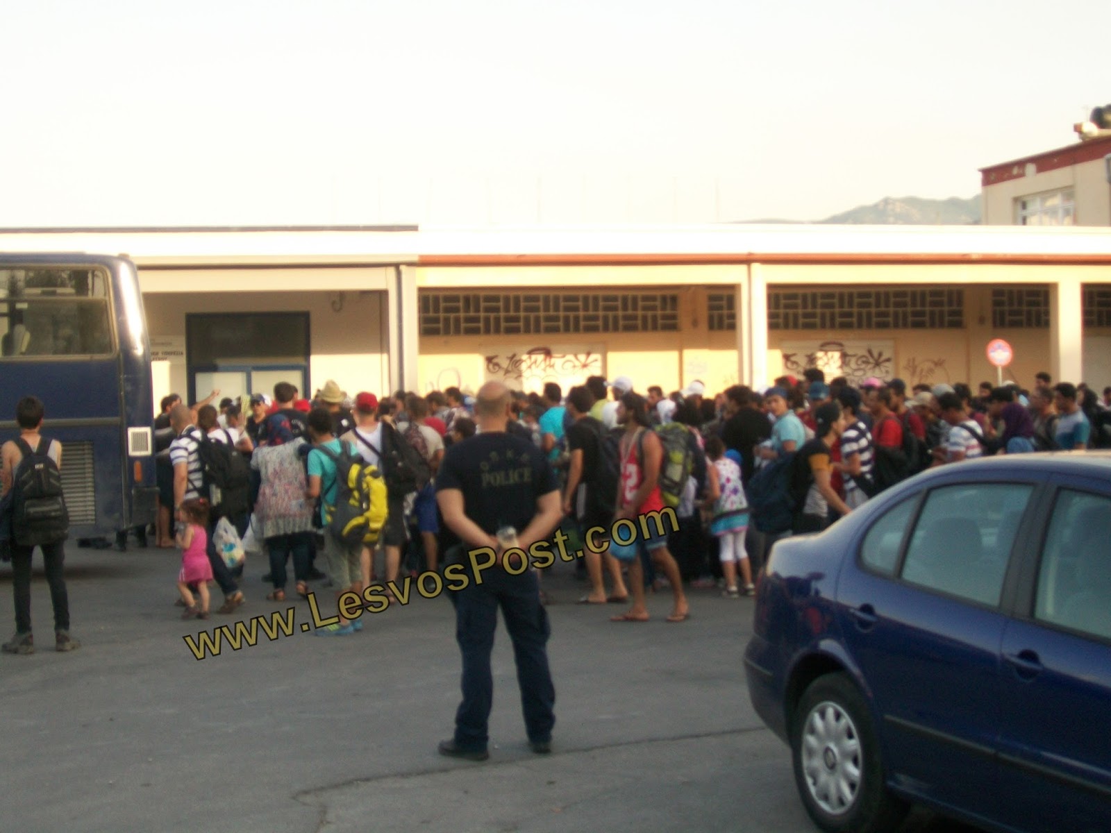 χώρο έξω από το τελωνείο Μυτιλήνης όπου από εκεί οι ισχυρές αστυνομικές δυνάμεις