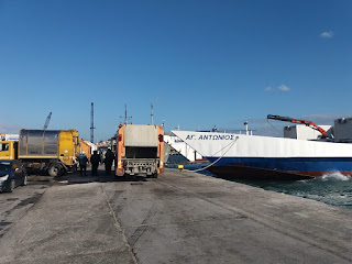 Ο Δήμος Λέσβου για ακόμα μια φορά αντέδρασε γρήγορα και μπλοκαρε με αποριμματοφορα την μπουκαπόρτα του φορτηγου πλοιου με σκοπό να μην γίνει η μεταφορά των οικίσκων..